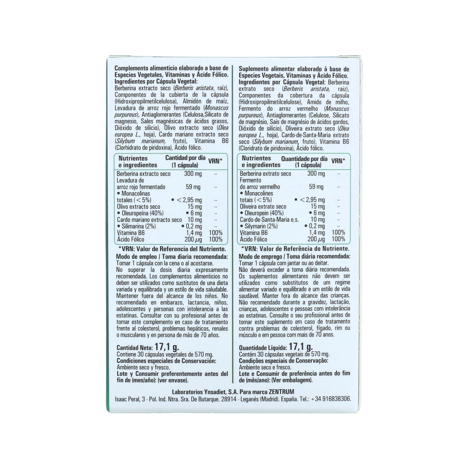 Gélules élaborées à partir d'une combinaison de levure de riz rouge et extrait sec d'olive qui aident à réguler les niveaux de cholestérol dans le sang.