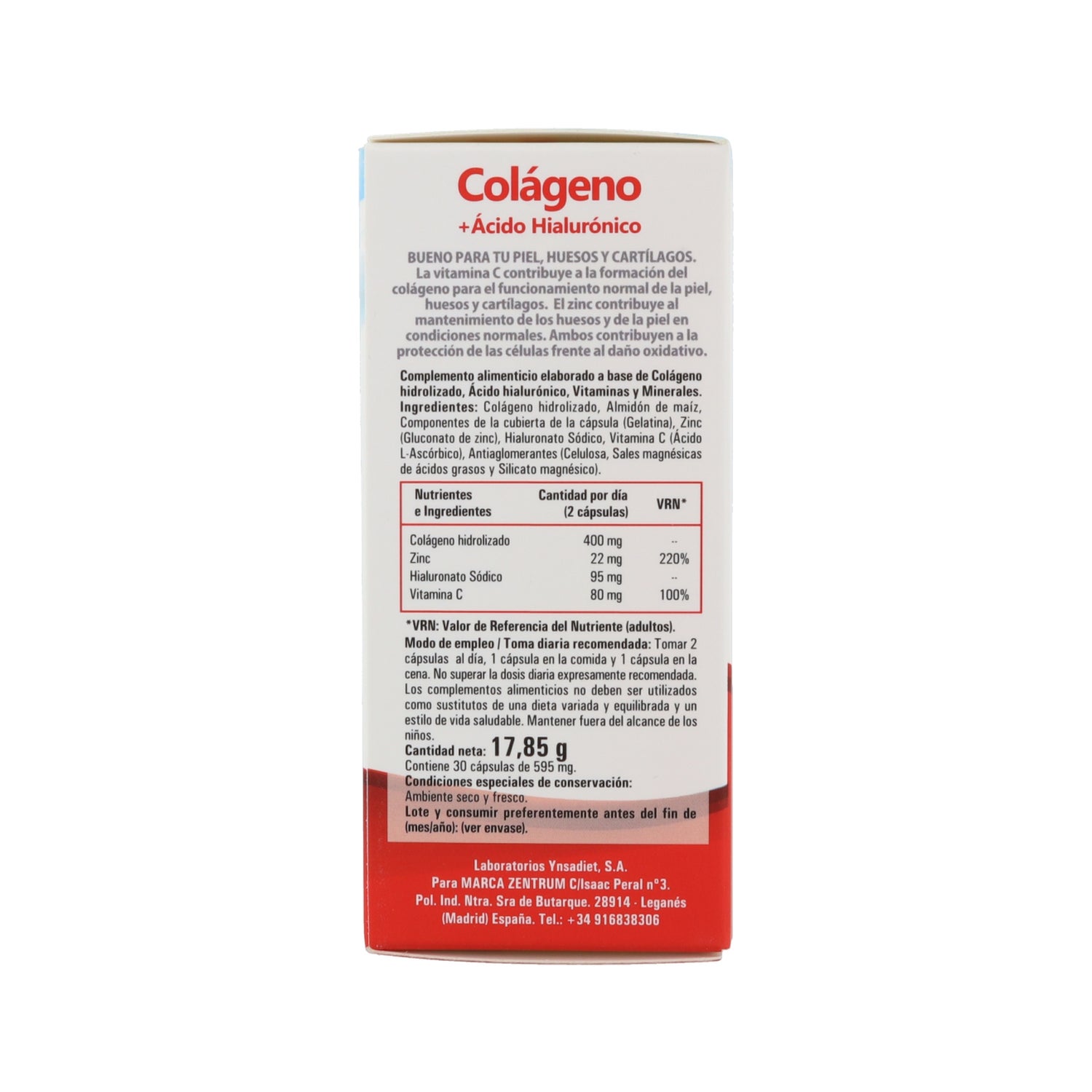 Collagène hydrolysé (fortigel®), amidon de maïs, gluconate de zinc, anti-glomerants (cellulose, stéarate magnétique(par ex. silicate de magnésium et silicate de magnésium), acide hyaluronique, vitamine C ou acide ascorbique. Composants de l'enveloppe de la capsule : gélatine et eau.