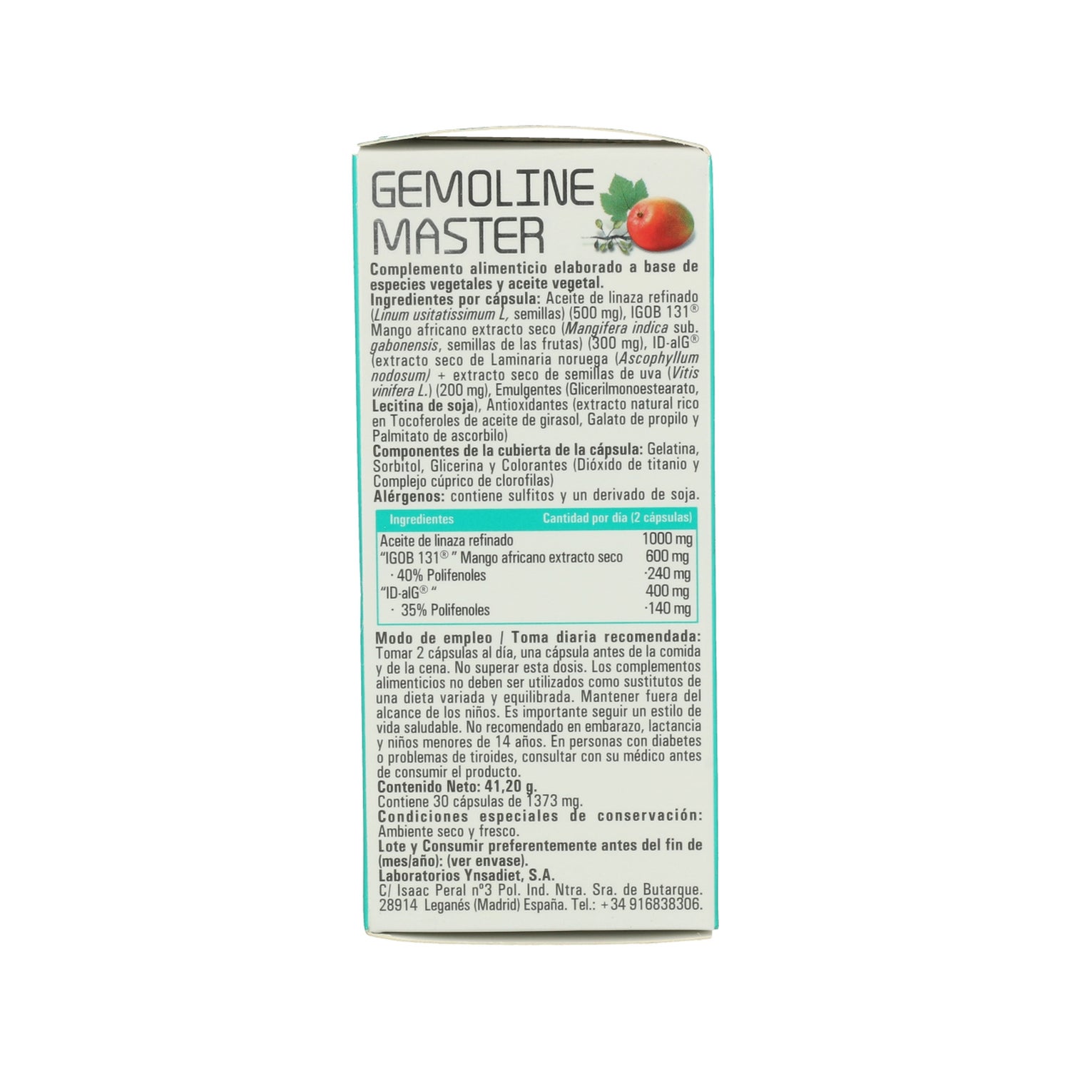 Ynsadiet gemoline master 30 capsules est le complément alimentaire à base d'huile de lin, de mangue africaine, de laminaire norvégienne et de pépins de raisin, une combinaison qui vous aide à maintenir la ligne et favorise la perte du tissu adipeux (graisse).
