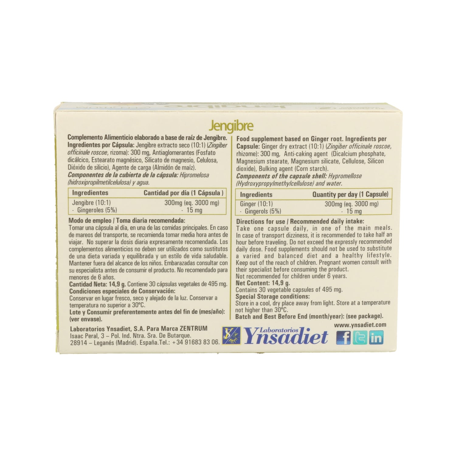Extrait sec de gingembre (10:1) (Zingiber Officinale Roscoe, Rhizome) : 300 mg.