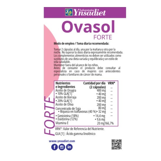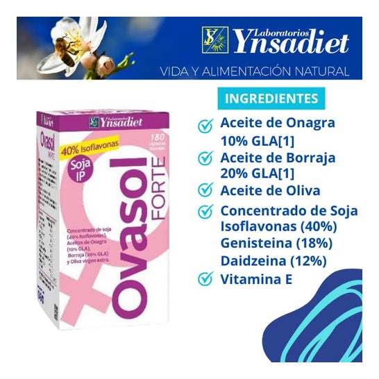 Les perles Ynsadiet Ovasol Forte sont fabriquées à partir d'isoflavones de soja, un produit naturel qui améliore la qualité de vie des femmes adultes. De cette façon, les femmes de plus de 50 ans seront en mesure de réduire l'inconfort de la ménopause.