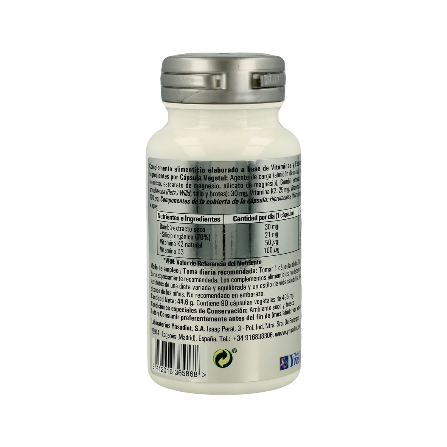 1 gélule apporte : vitamine D3 (100 μg), vitamine K2 (50 μg), bambou (30 mg), silicium organique (21 mg), vitamine D3 / cholécalciférol, vitamine K2 / ménaquinone.