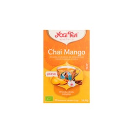 Yogi Tea Chai Mango 17 sachets est une infusion biologique qui combine la douceur de la mangue avec des épices chai traditionnelles. Elle offre un profil fruité avec des nuances de orange fraîche et de cannelle aromatique, idéale pour des pauses de relaxation.