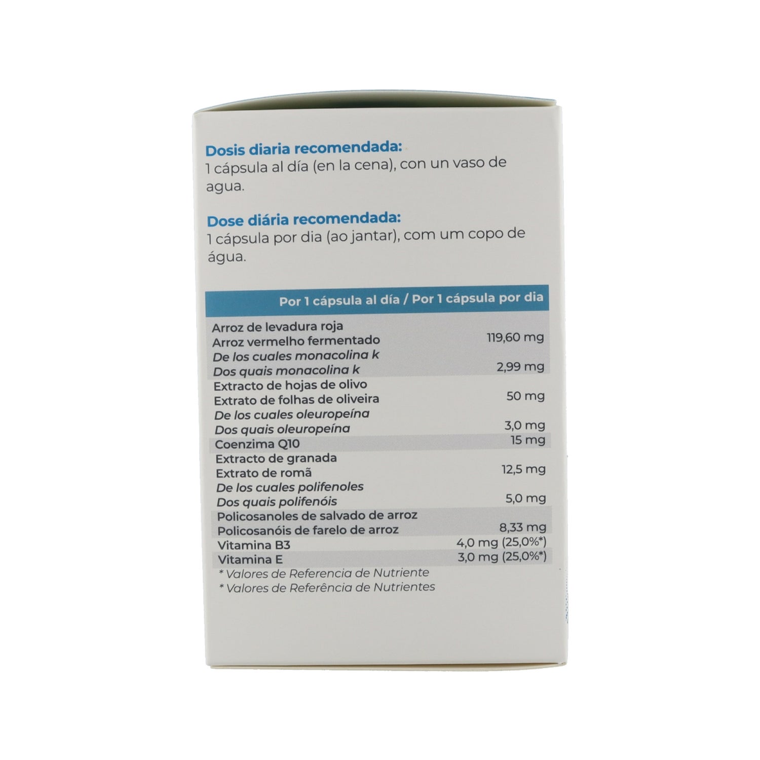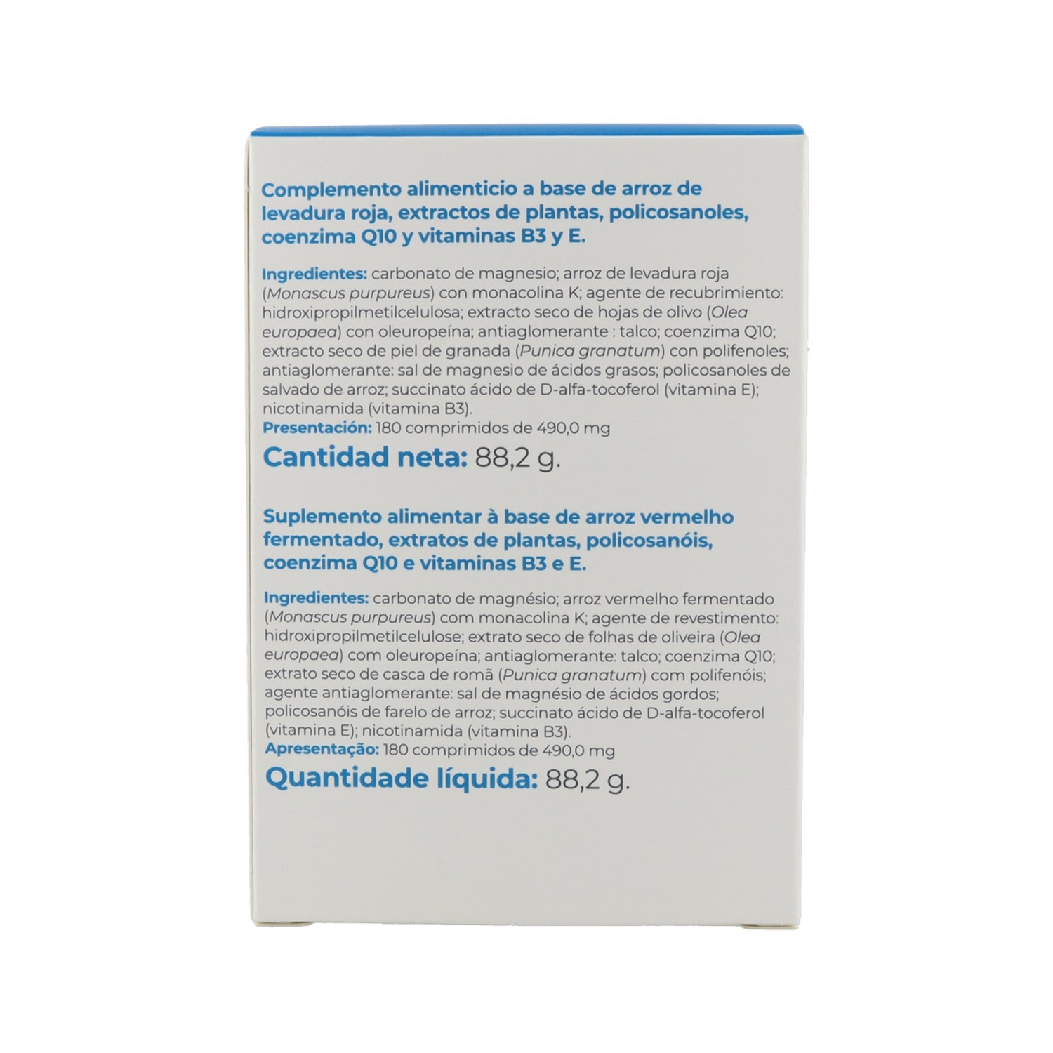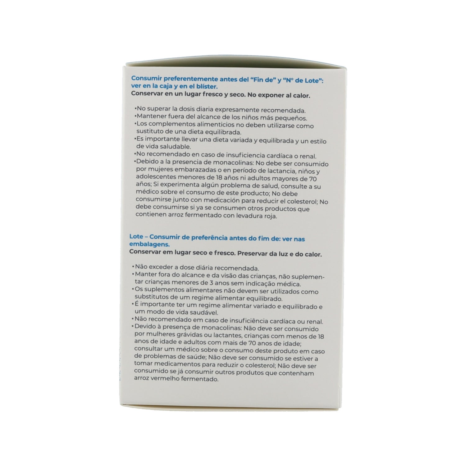 Complément alimentaire à base de levure de riz rouge et de policosanols issus du son de levure de riz rouge. Il favorise un métabolisme sain des lipides et aide à contrôler le cholestérol. Se présente sous forme de comprimés contenant moins de 3 mg de monacoline K par unité, afin de respecter la législation. Contient des extraits de plantes, de la coenzyme Q10, de la vitamine B3 et de la vitamine E.