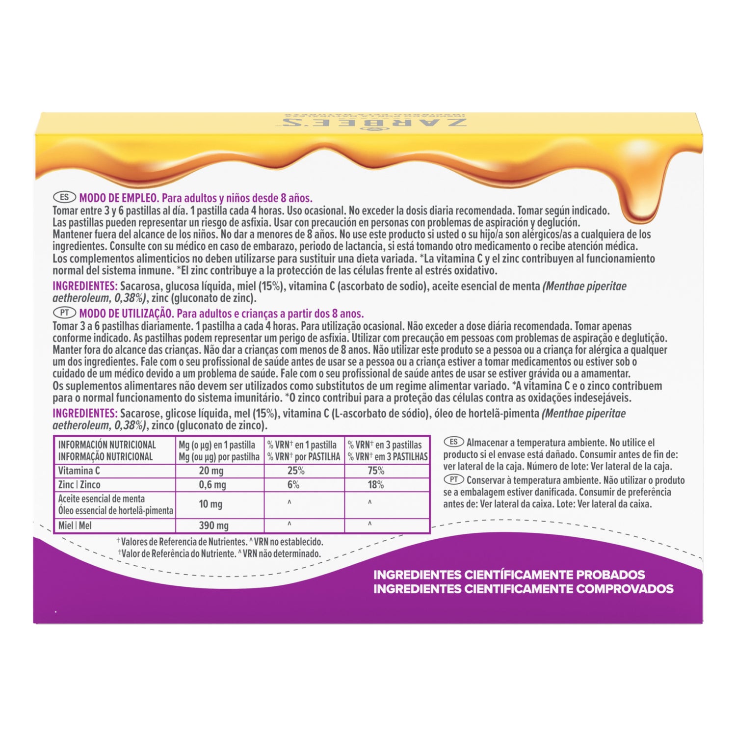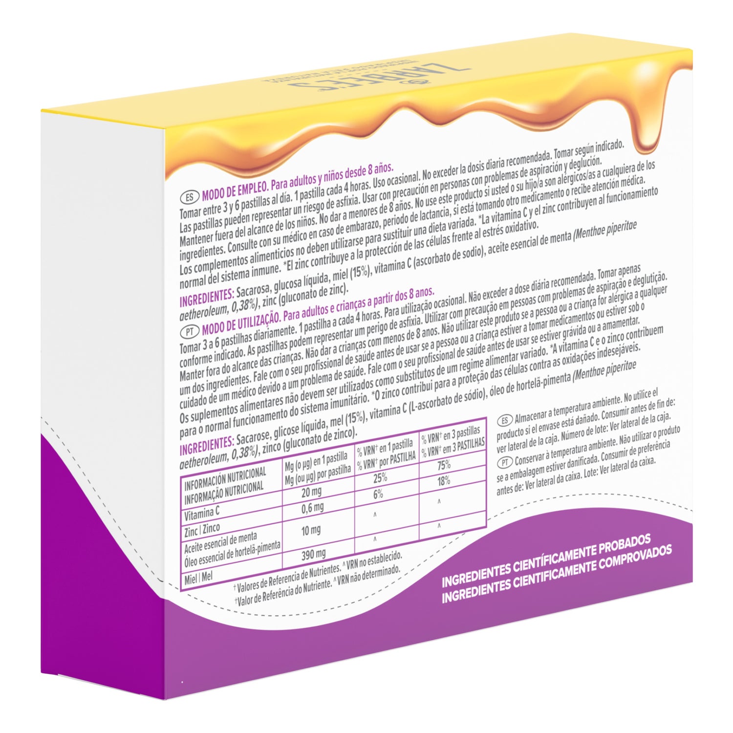 La vitamine C et le zinc contribuent au fonctionnement normal du système immunitaire, et le zinc contribue également à la protection des cellules contre le stress oxydatif. D'autre part, le miel et l'huile de menthe sont deux ingrédients connus pour leur efficacité à apaiser les démangeaisons de la gorge.