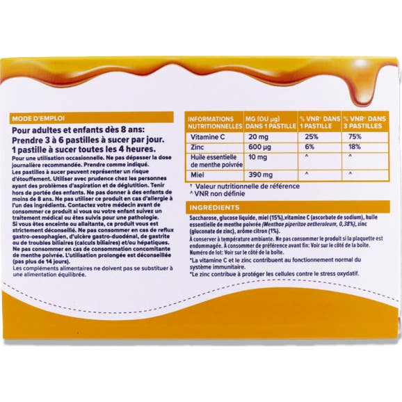 Son contenu en miel apporte un goût naturel et réconfortant, tandis que la menthe procure une sensations de fraîcheur.