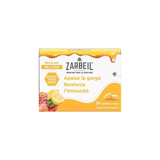 Zarbeil Pastilles Gorge & Immunité Miel Citron 24comp est un produit conçu pour fournir un soulagement immédiat de la gorge. Ces pastilles sont une combinaison de miel et de citron, qui sont agréables au palais.