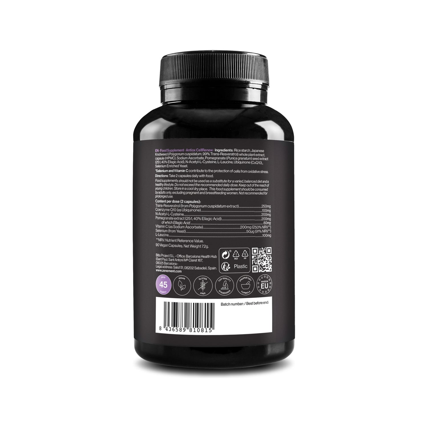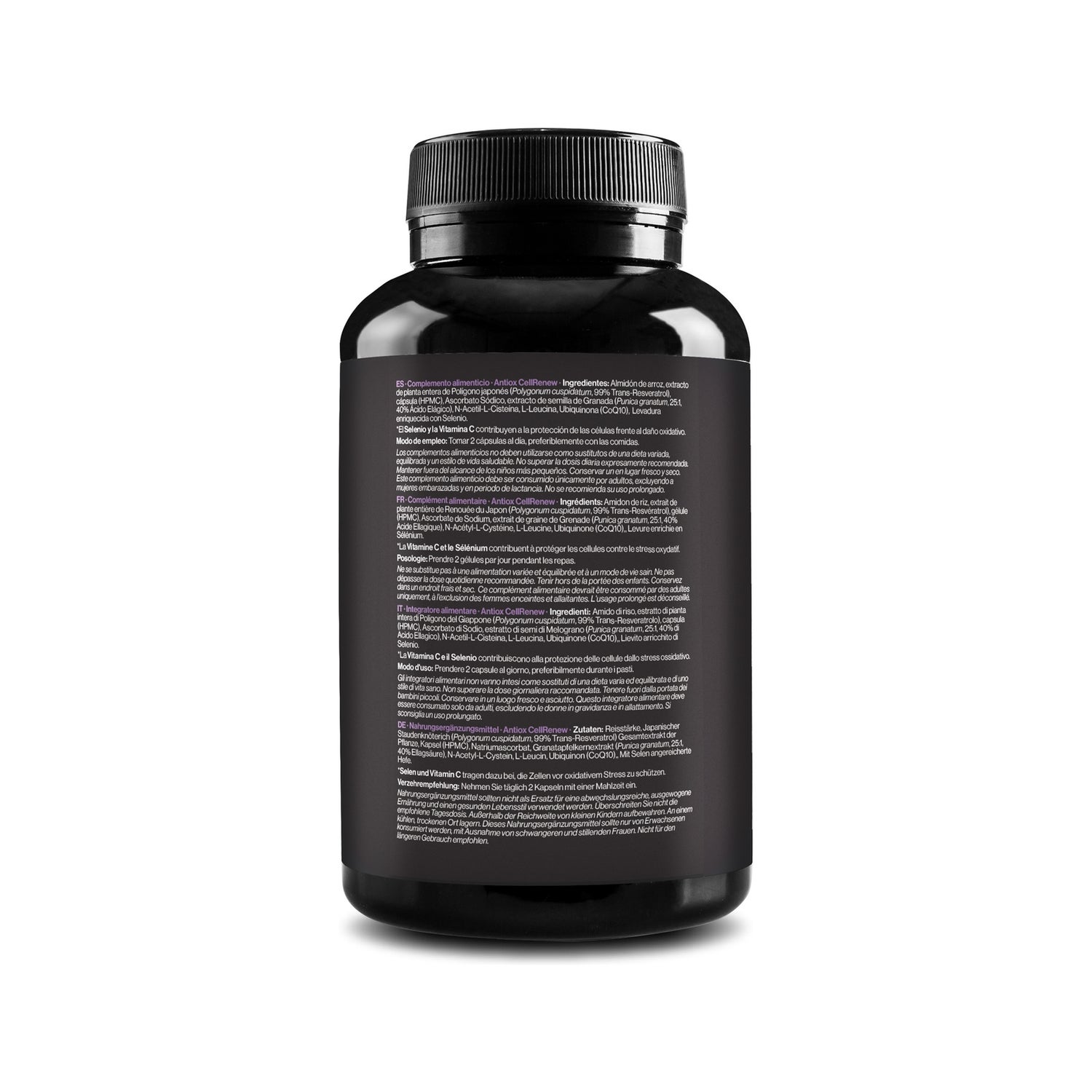 Antiox CellRenew combine des ingrédients antioxydants et des nutriments qui soutiennent la fonction mitochondriale. Avec du Trans-Resvératrol et de la CoQ10, ainsi que du NAC, de la Grenade, de la Vitamine C et du Sélénium, il aide à réduire la fatigue et à protéger les cellules des dommages oxydatifs. - Formule unique - Double action antioxydante et du métabolisme énergétique - Ingrédients en synergie