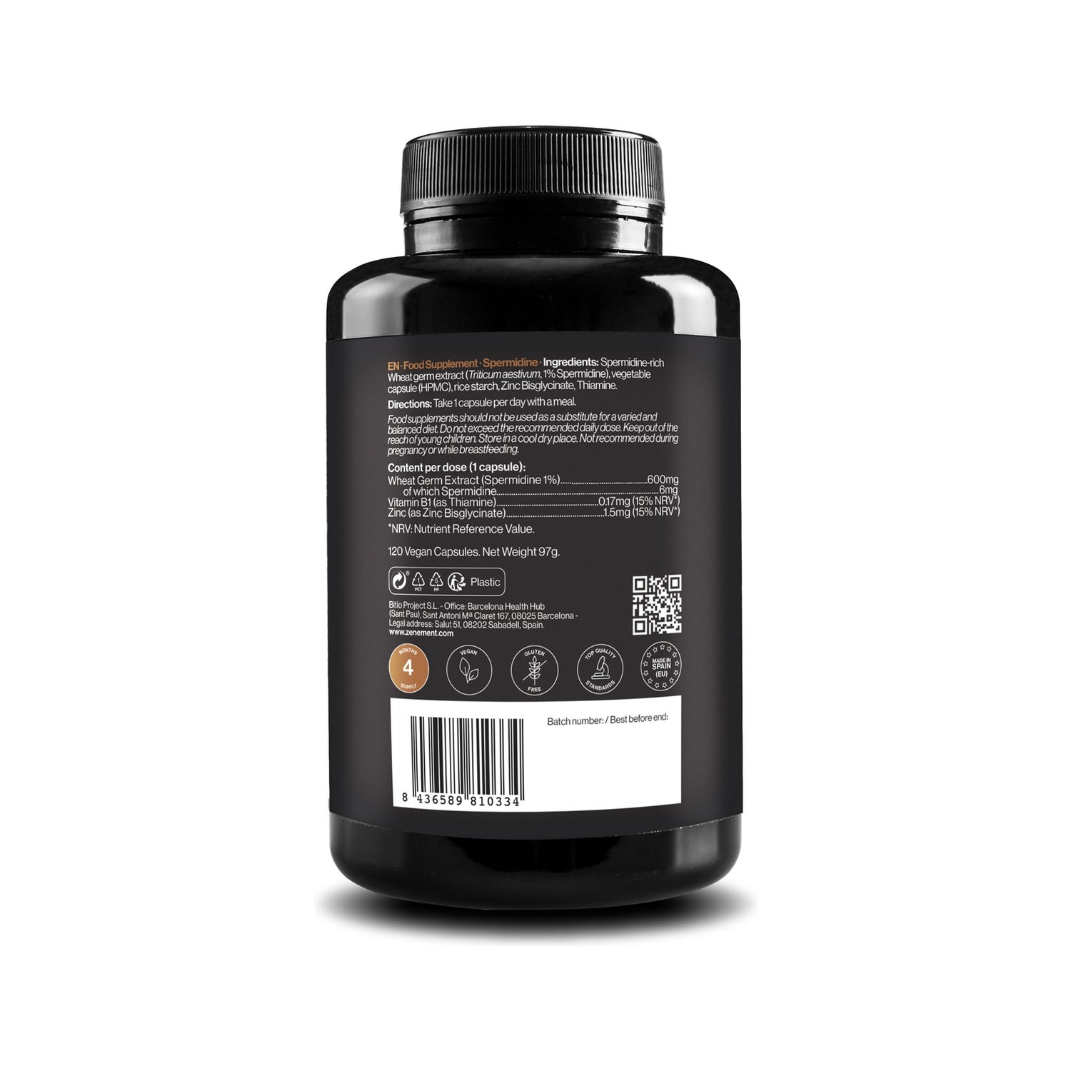 Zenement Spermidine 120caps est un complément alimentaire qui aide à améliorer le processus de régénération cellulaire et à prévenir la dégénérescence des cellules. Il contribue également au maintien d'une bonne santé cardiovasculaire. Convient aux végétaliens. Contient 120 gélules.