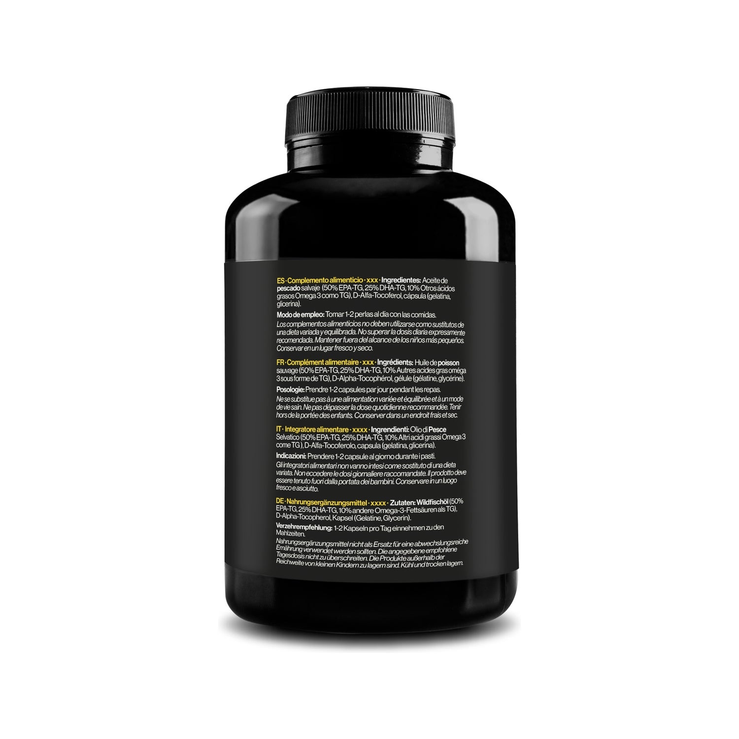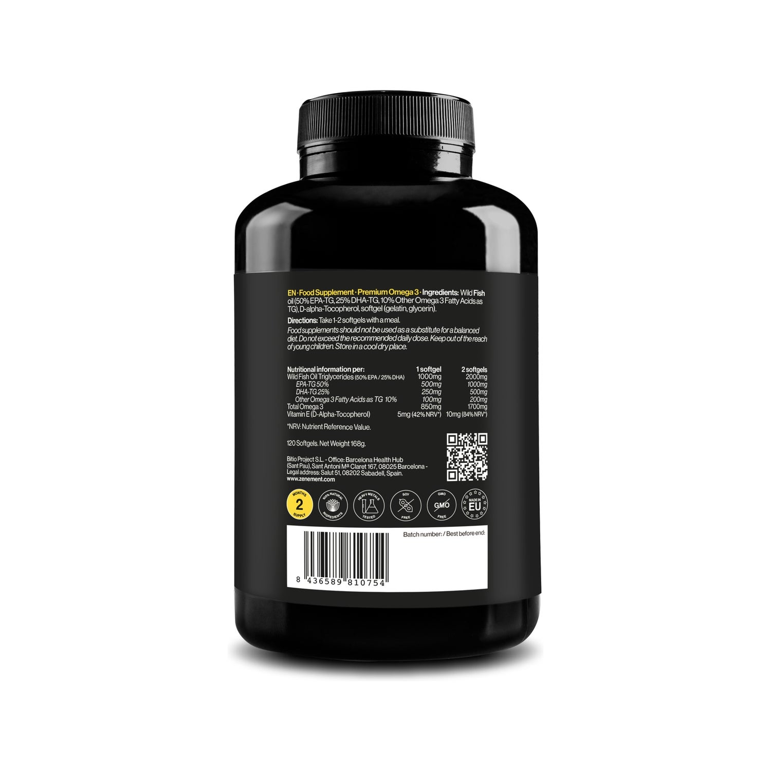 Omega 3 Premium sous forme de triglycérides assure une absorption et une efficacité maximales avec 1000 mg d'EPA et 500 mg de DHA par dose (2 capsules). Nous utilisons de l'huile de poisson sauvage certifiée par Friends of the Sea (FOS) pour un produit pur et durable. Nos capsules molles sont faciles à avaler et sont conçues pour protéger les propriétés de l'huile de poisson. - Triglycérides pour une meilleure absorption. - Haute puissance d'EPA et de DHA. - Huile d'anchois certifiée FOS.
