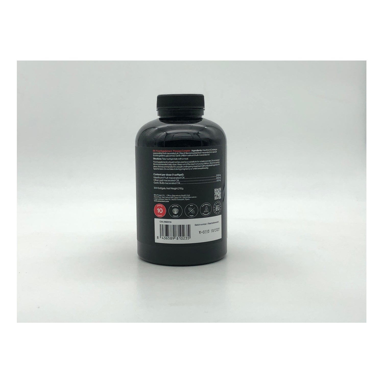 Nous avons formulé nos perles PRESSURA COMPLEX de Zenement avec 3 ingrédients : huile macérée d'ail, aubépine et feuilles d'olivier. - Le fruit de l'aubépine contient des tanins, des polyphénols et des flavonoïdes, des pigments naturels ayant une activité antioxydante. - Le bulbe d'ail possède une composition chimique complexe avec plus de 100 composants différents, ce qui lui confère d'innombrables propriétés. Parmi ses composants, on trouve les huiles volatiles allicine, alline et ajoène ; il contient également des enzymes, des vitamines A, B, C et E, et du sélénium. - Les feuilles d'olivier possèdent des propriétés astringentes, antiseptiques, calmantes et stimulantes du système immunitaire. Les feuilles d'olivier ont été macérées dans de l'huile d'olive vierge extra de première pression à froid. Nos capsules de Pressura Complex ont été analysées par un laboratoire accrédité. Nous réalisons des analyses périodiques dans des laboratoires indépendants accrédités pour garantir la qualité maximale du produit.