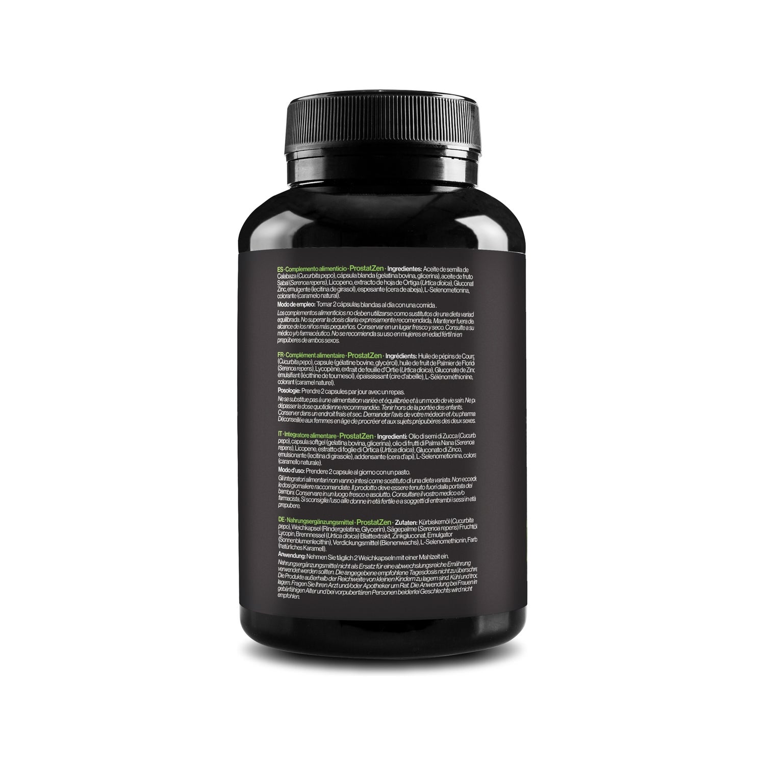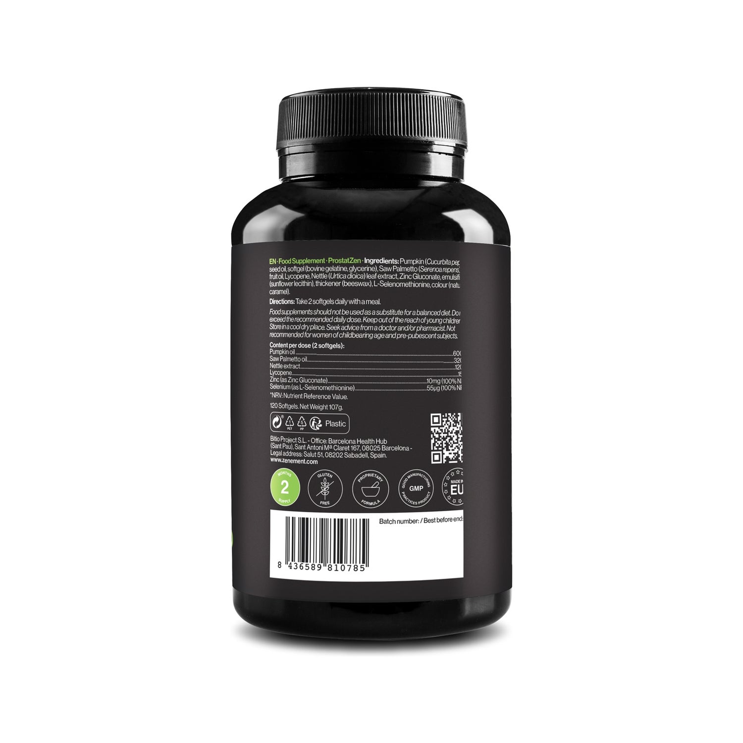 ProstatZen combine des huiles de Saw Palmetto et de Citrouille avec de l'Extrait d'Ortie, du Lycopène, du Zinc et du Sélénium dans une formule qui agit en synergie pour maintenir des niveaux normaux de testostérone et protéger les cellules. Les huiles garantissent une absorption optimale. - Formule Unique avec des huiles de Saw Palmetto et de Citrouille - Niveaux Normaux de Testostérone et Protection Cellulaire - Absorption Optimale de la Formule