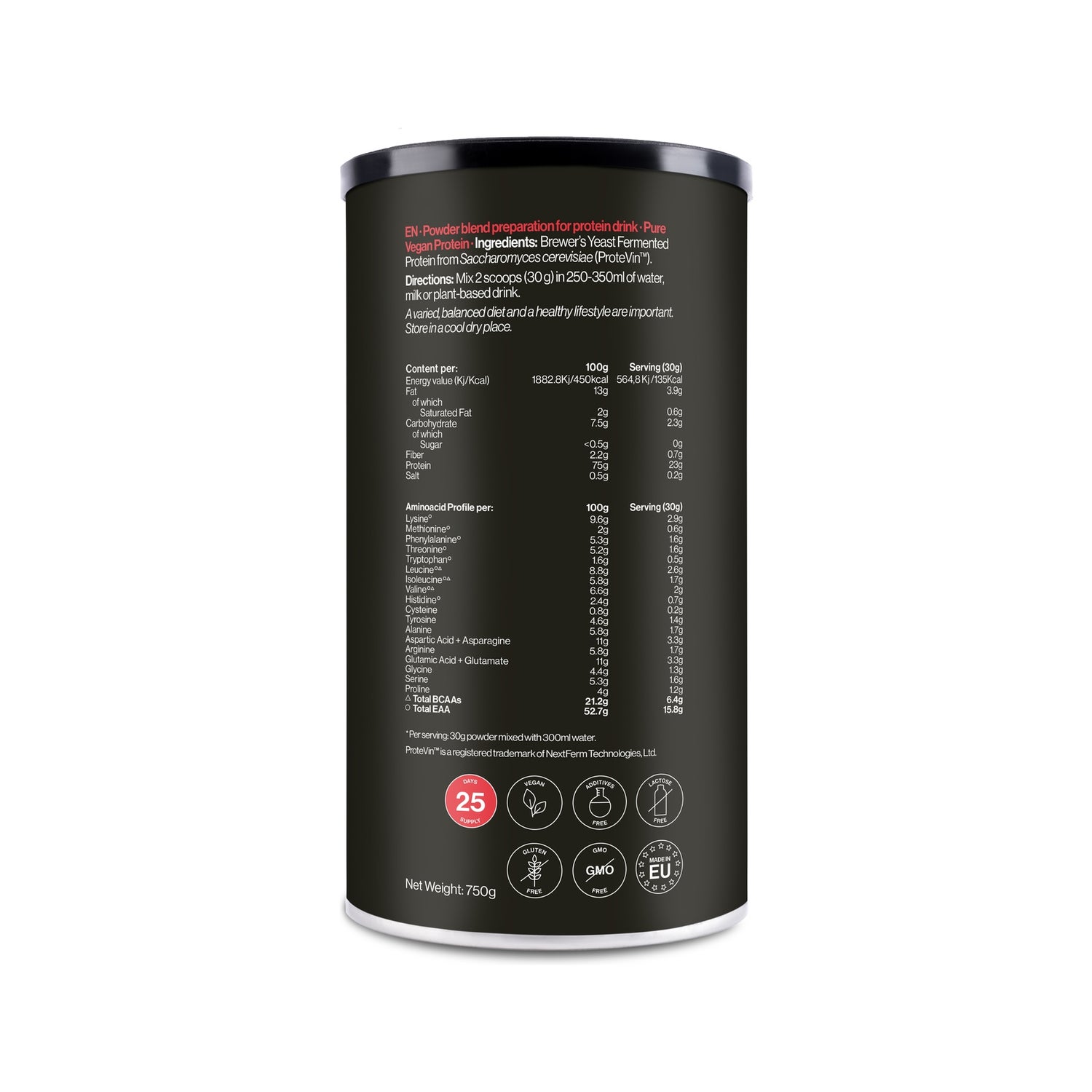 Pure Vegan Protein est une protéine végétalienne de haute qualité faite à 100 % de levure de bière. Avec une haute valeur biologique et une excellente digestibilité, elle est idéale pour le maintien et la croissance de la masse musculaire. Sans sucres, édulcorants ni arômes ajoutés, elle est parfaite pour ceux qui recherchent une nutrition équilibrée et naturelle. -Végane, à base de levure de bière -Haute valeur biologique -Biodisponibilité et digestibilité élevées
