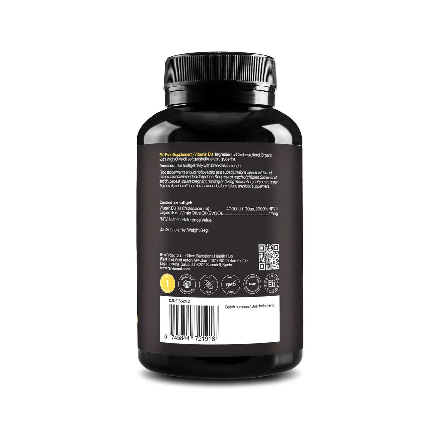 Complément alimentairevitamine D3 d'origine naturelle. Contribue à l'absorption et à l'utilisation normales du calcium et du phosphore, pour le maintien des os en conditions saines.